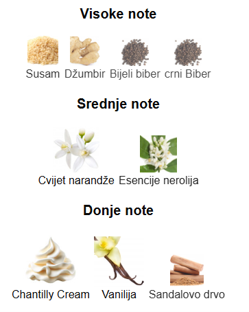 Gornje note: Susam, Džumbir, Beli i crni Biber
